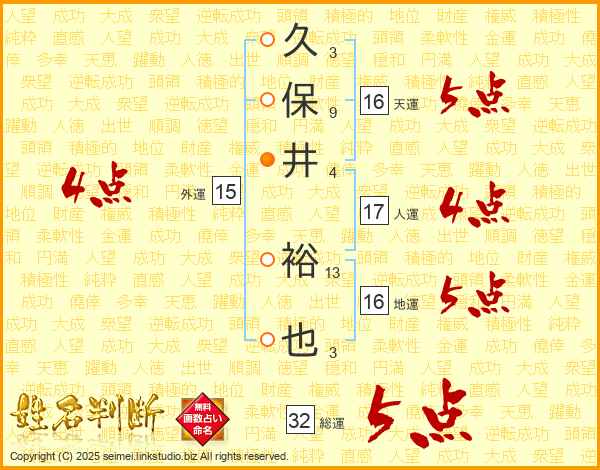 久(3画)保(9画)井(4画) 裕(13画)也(3画)