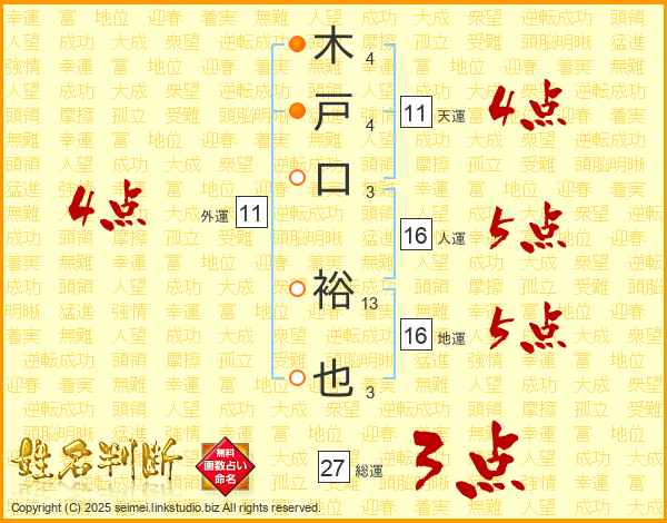 木戸口裕也さんの総運は27画の3点!