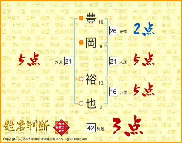 豊岡裕也さんの人運は21画の5点!