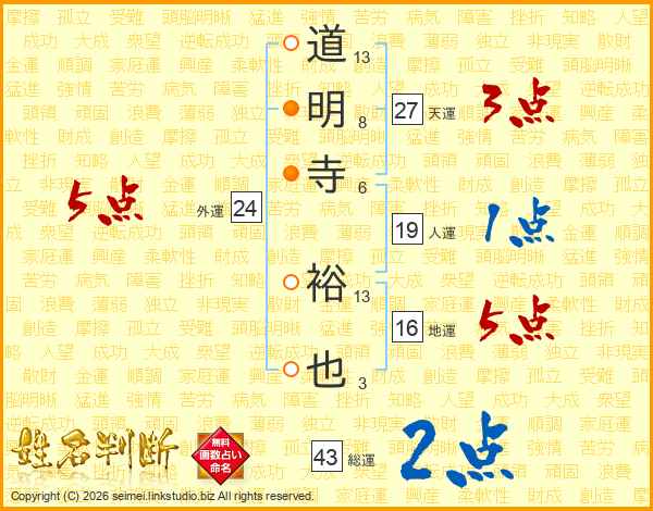 道明寺裕也さんの総運は43画の2点!