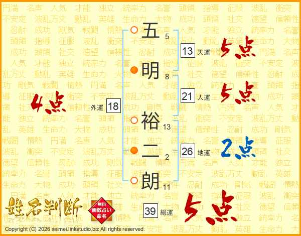五明裕二朗さんの総運は39画の5点!