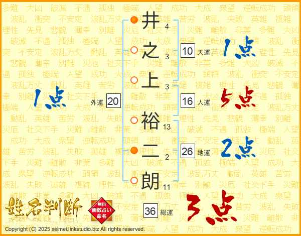 井之上裕二朗さんの人運は16画の5点!