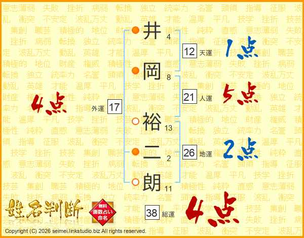 井岡裕二朗さんの総運は38画の4点!