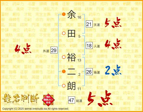余田裕二朗さんの総運は47画の5点!