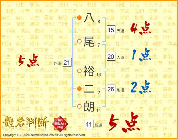 八尾裕二朗さんの総運は41画の5点!