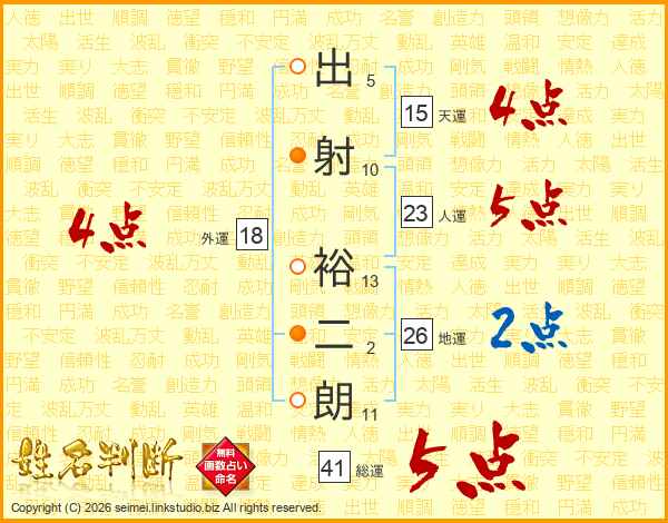 出射裕二朗さんの総運は41画の5点!