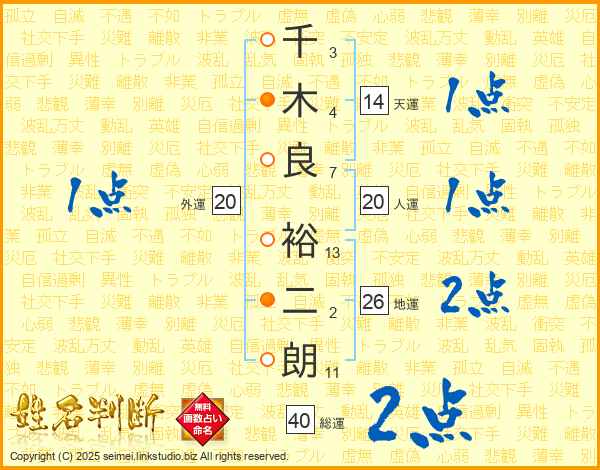 千木良裕二朗さんの総運は40画の2点!