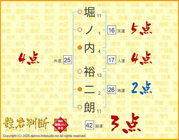 堀ノ内裕二朗さんの外運は25画の4点!
