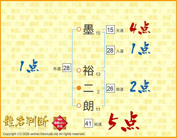 墨裕二朗さんの総運は41画の5点!