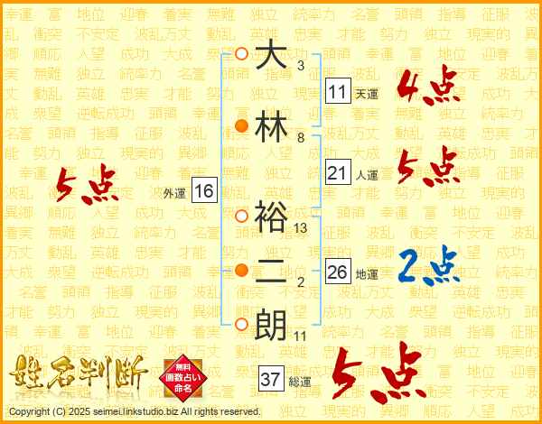 大林裕二朗さんの総運は37画の5点!