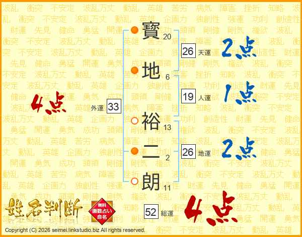 寳地裕二朗さんの天運は26画の2点!