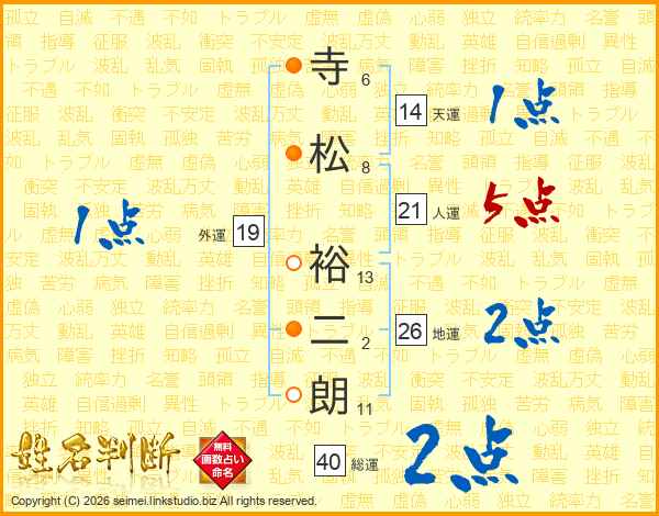 寺松裕二朗さんの人運は21画の5点!