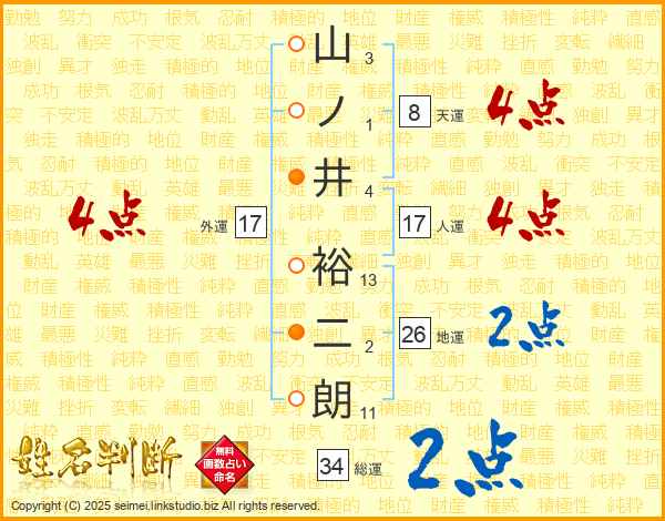 山ノ井裕二朗さんの外運は17画の4点!