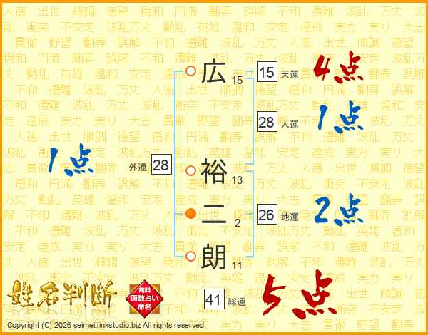 広裕二朗さんの総運は41画の5点!