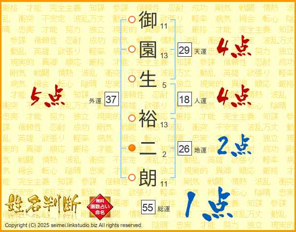 御園生裕二朗さんの外運は37画の5点!
