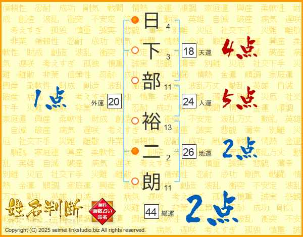 日下部裕二朗さんの総運は44画の2点!