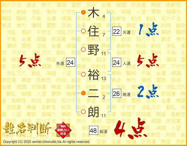 木住野裕二朗さんの外運は24画の5点!