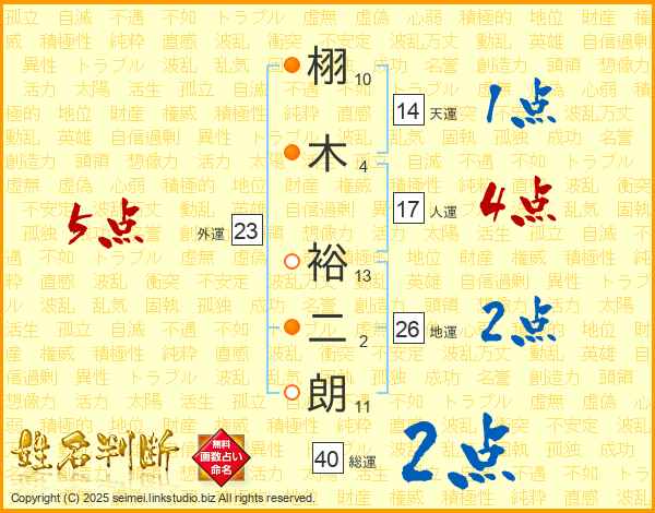 栩(10画)木(4画) 裕(13画)二(2画)朗(11画)