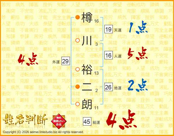 樽川裕二朗さんの総運は45画の4点!