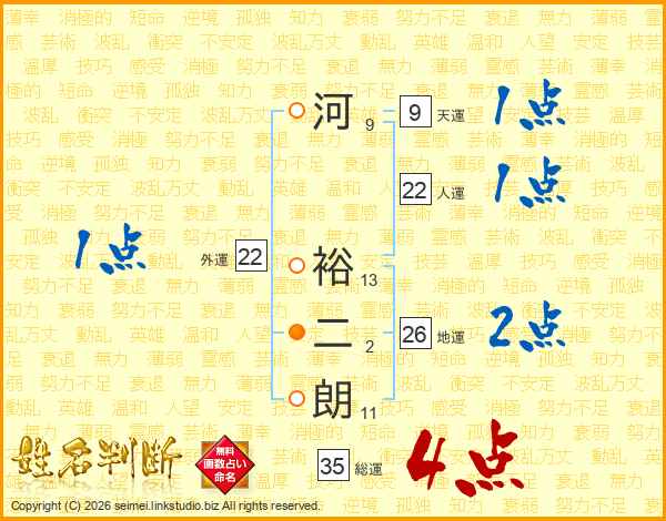 河裕二朗さんの総運は35画の4点!