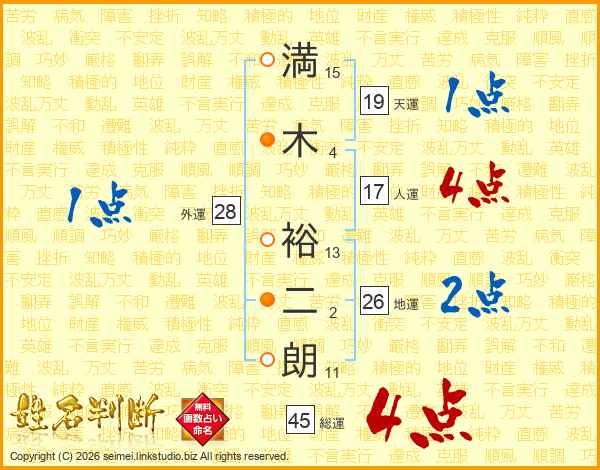 満木裕二朗さんの総運は45画の4点!