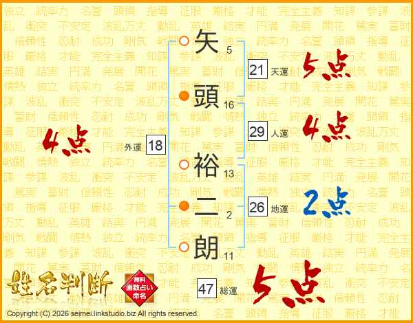 矢頭裕二朗さんの総運は47画の5点!