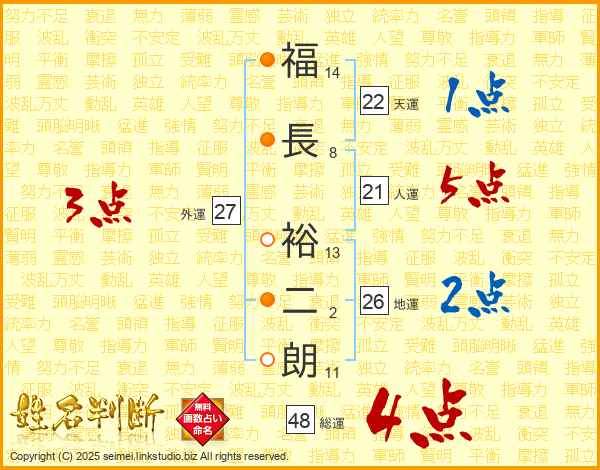 福長裕二朗さんの総運は48画の4点!