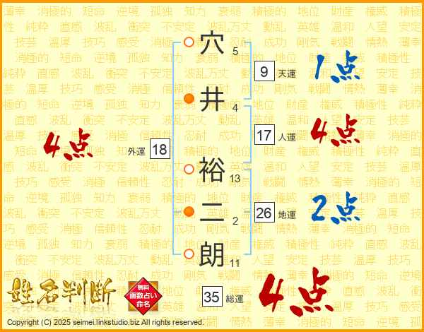 穴井裕二朗さんの総運は35画の4点!