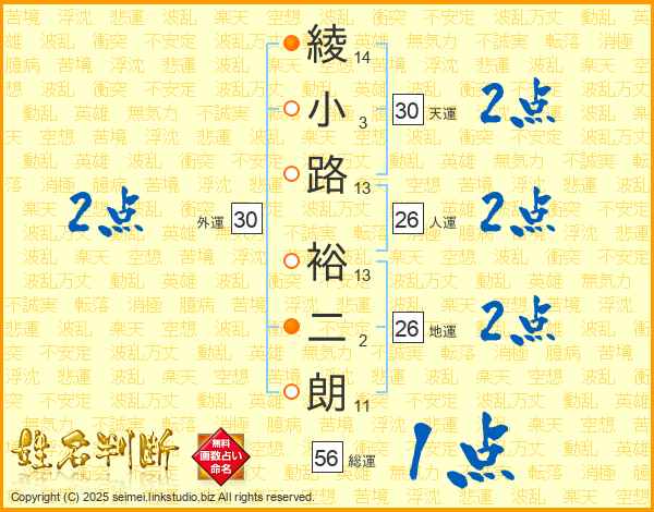 綾小路裕二朗さんの総運は56画の1点!