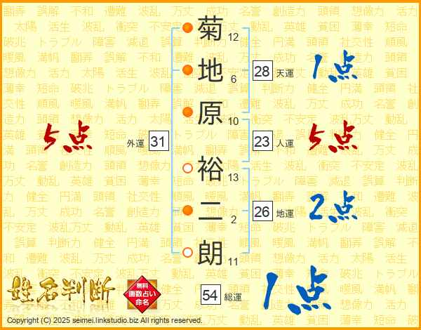 菊地原裕二朗さんの外運は31画の5点!