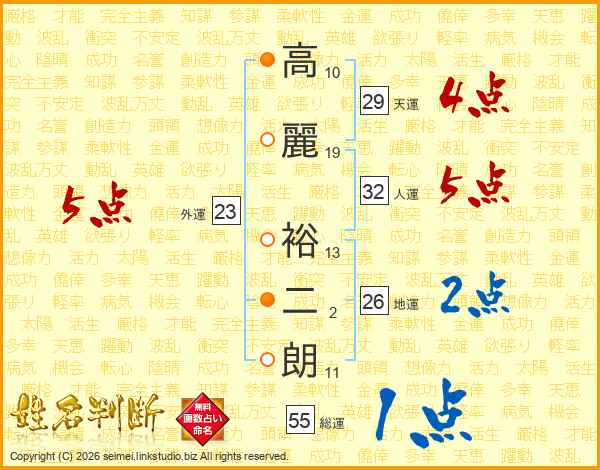 高麗裕二朗さんの総運は55画の1点!