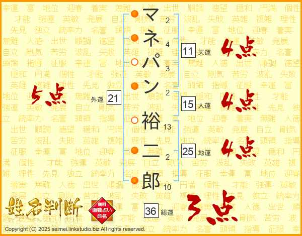 マネパン裕二郎さんの総運は36画の3点!