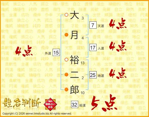 大月裕二郎さんの総運は32画の5点!
