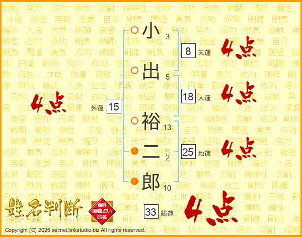 小出裕二郎さんの総運は33画の4点!
