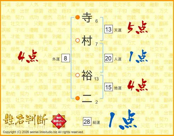 寺村裕二さんの総運は28画の1点!