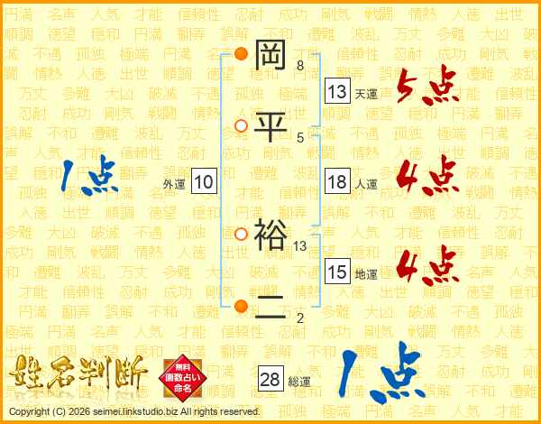 岡平裕二さんの総運は28画の1点!
