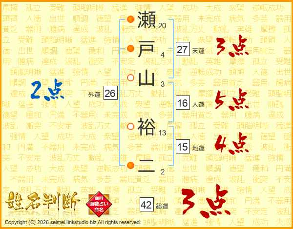 瀬戸山裕二さんの総運は42画の3点!