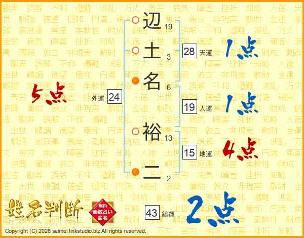 辺(19画)土(3画)名(6画) 裕(13画)二(2画)