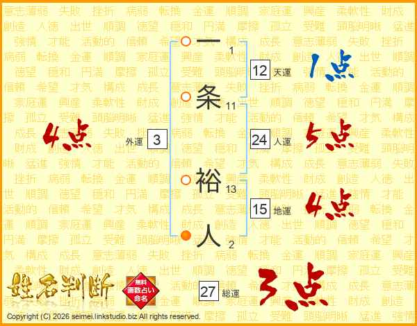 一条裕人さんの人運は24画の5点!