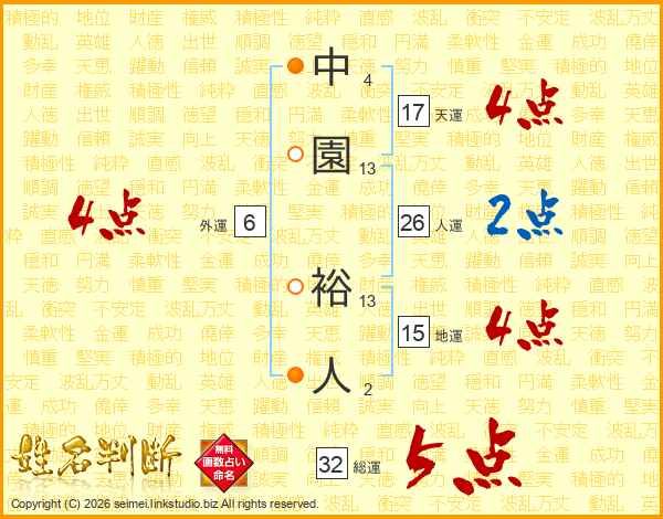 中園裕人さんの総運は32画の5点!