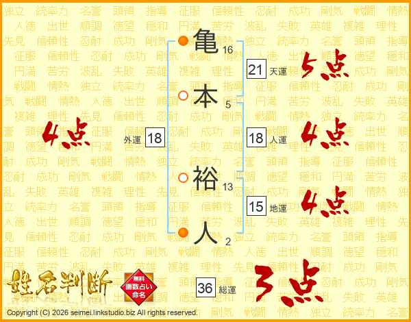 亀本裕人さんの天運は21画の5点!