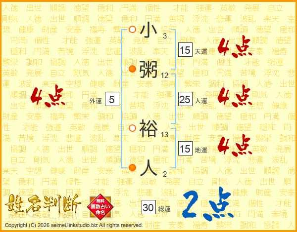 小粥裕人さんの天運は15画の4点!