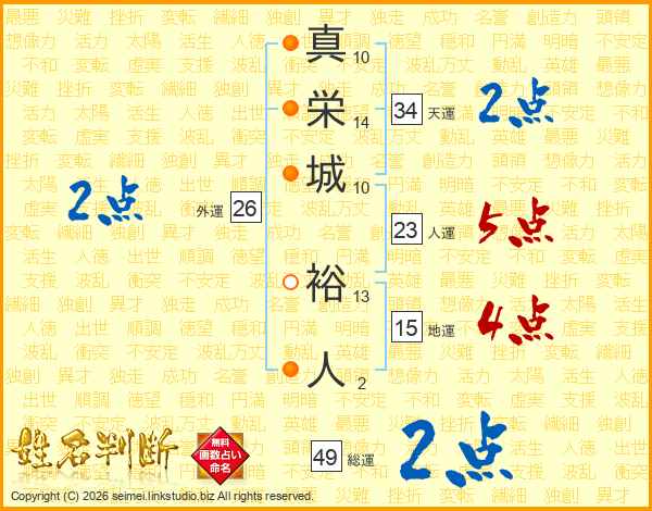 真(10画)栄(14画)城(10画) 裕(13画)人(2画)