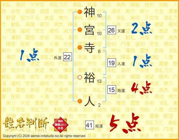 神宮寺裕人さんの総運は41画の5点!