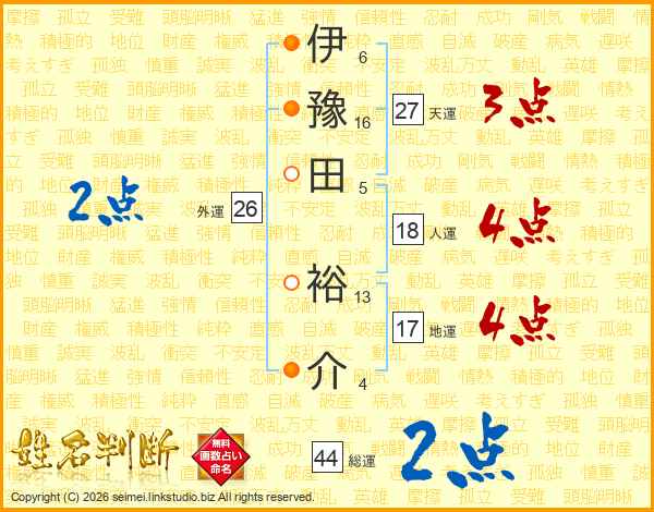 伊豫田裕介さんの地運は17画の4点!