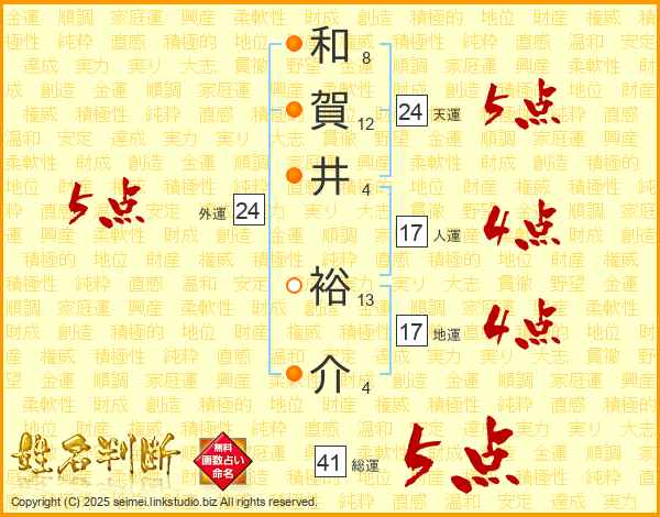和(8画)賀(12画)井(4画) 裕(13画)介(4画)