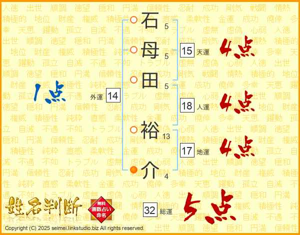 石母田裕介さんの総運は32画の5点!