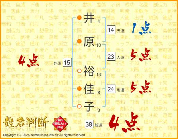 井(4画)原(10画) 裕(13画)佳(8画)子(3画)
