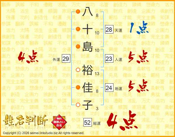 八十島裕佳子さんの総運は52画の4点!