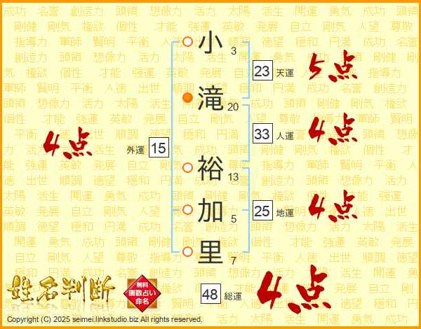 小滝裕加里さんの総運は48画の4点!